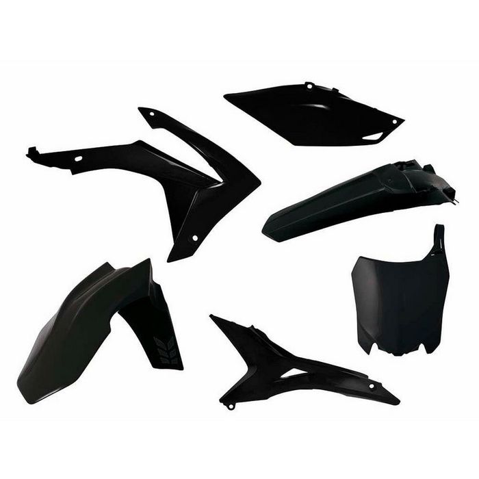 Plastics Kit Rtech 6 piece front fender, rear fender, radiator shrouds, side panel front number plate and air box covers Black