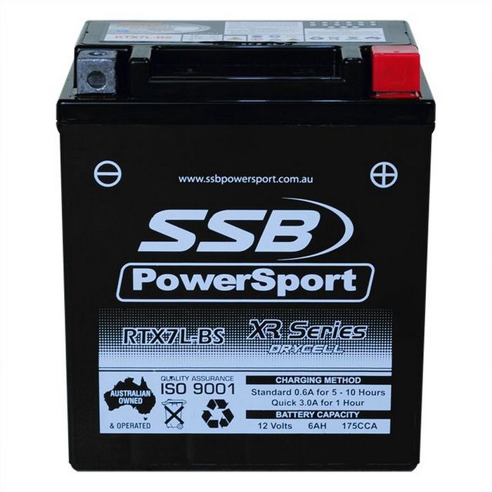 MOTORCYCLE AND POWERSPORTS BATTERY (YTX7L-BS) AGM 12V 6AH 175CCA BY SSB HIGH PERFORMANCE