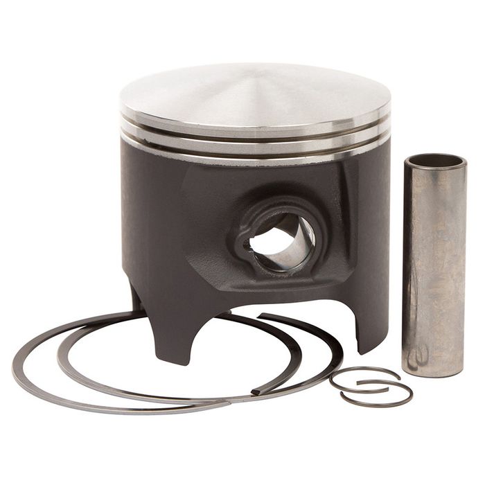 Vertex piston kits include the piston, rings, wrist pin and circlips. The pistons are heat-treated with a T-6 hardening and tempering cycle. Also, a molybdenum disulphide skirt coating is used for reducing wear and improving the break-in phase of each piston.