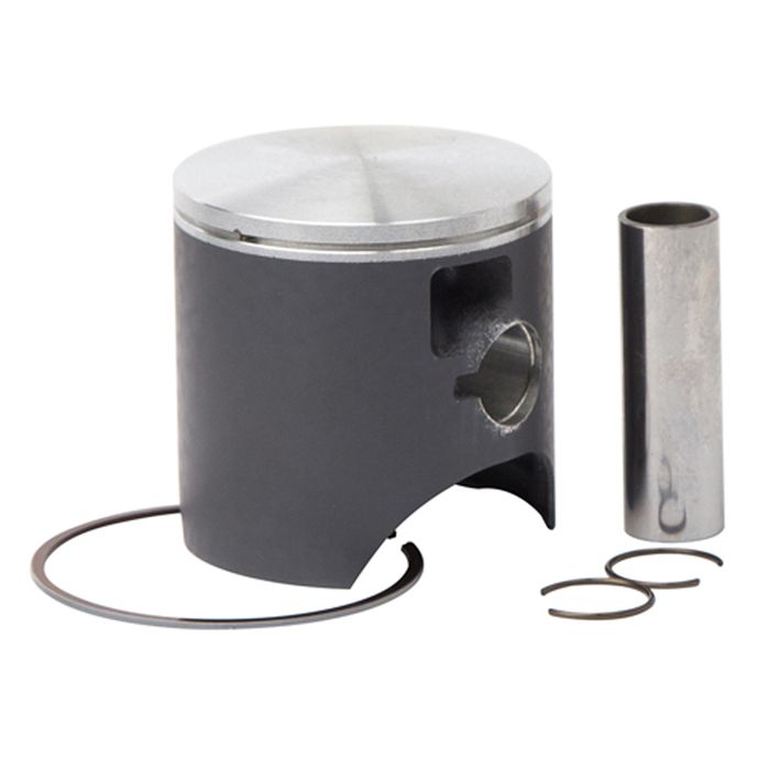 Vertex piston kits include the piston, rings, wrist pin and circlips. The pistons are heat-treated with a T-6 hardening and tempering cycle. Also, a molybdenum disulphide skirt coating is used for reducing wear and improving the break-in phase of each piston.