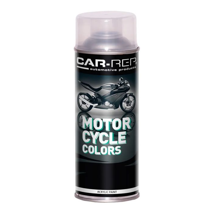 Genuine acrylic paint formula for motorcycles. High wear resistance and surface hardness. Polish the surface with sandpaper if necessary. Remove dust, grease and other contaminants. Protect areas outside the object. Shake the can for about 3 min. Test painting on small invisible area is recommended. Spray from about 20 -30 cm distance. Spray first a very light thin coat, wait for about 30-60 seconds. Thereafter spray 3 layers, first horizontal, then vertical and finally horizontal. Wait for about 30-60 seconds and repeat if necessary. After use, clean the nozzle by turning spray can upside down and spray until only propellant comes out. For higher gloss and depth of color we recommend to apply several layers of Car-Rep clear coat on top of the paint.