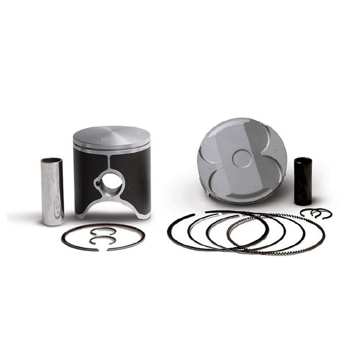 Vertex piston kits include the piston, rings, wrist pin, and circlips. The pistons are heat-treated with a T-6 hardening and tempering cycle. Also, a molybdenum disulphide skirt coating is used for reducing wear and improving the break-in phase of each piston.