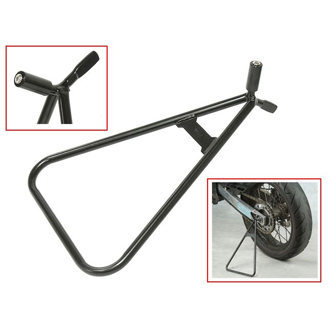 Triangle motorbike stand is built tough with heavy duty steel construction multiple axle insert to suit motorcycles with 18" or 19" rear wheels