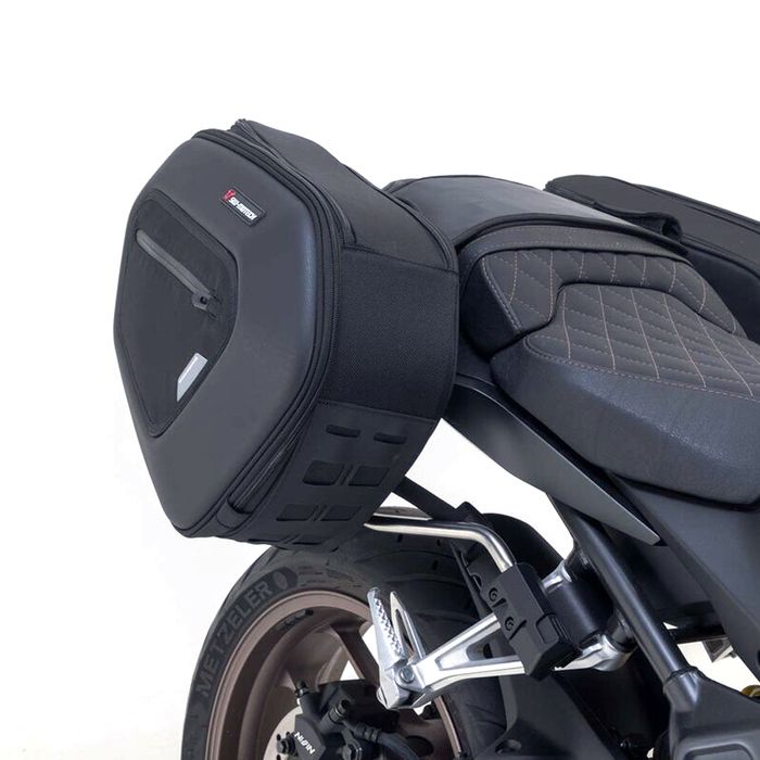 The high version of the PRO BLAZE saddlebags is specially designed for motorcycles with a higher positioned exhaust. Due to the elevated position, the bags are not affected by the heat radiation of the exhaust. SW-MOTECH manufactures this bag set and matching support arms for the Honda CB650R CBR650R
