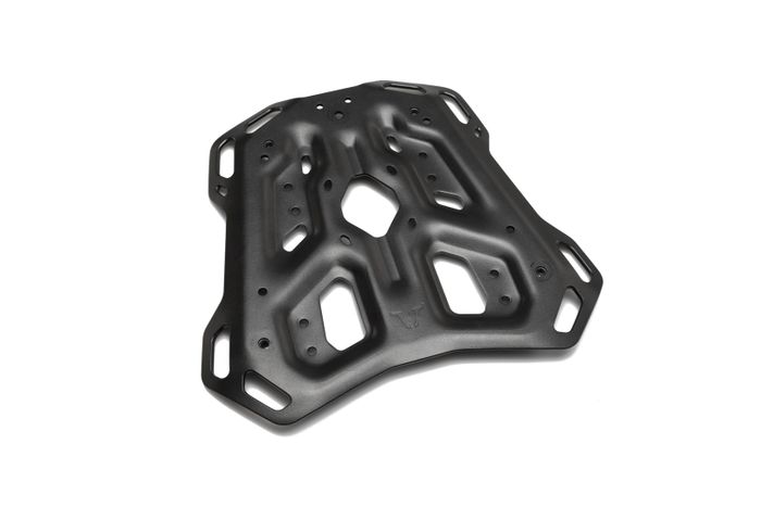 Ready for big adventure: Our ADVENTURE-RACK proves itself with its extreme durability and function-oriented shape. More than 15 years of experience producing racks, combined with feedback from customers and test riders, went into the development of this aluminum rack Material thickness, weight and geometry have been optimized for demanding tours and off-road use. The bike-specific attachments guarantee the best fit and easy mounting on original attachment points. Specifically developed for long-distance enduros, large street and sport touring machines, the ADVENTURE-RACK offers a large contact surface. Numerous, large lashing eyes provide secure hold for tail bags. The functional bores require adapter kits for attaching top cases by SW-MOTECH, Givi, Krauser and Shad or SysBags.