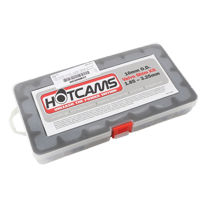 Hot Cams Shim Kit: 10.00mm, sizes 1.85-3.20mm in 0.05mm increments, with 3 of each size.