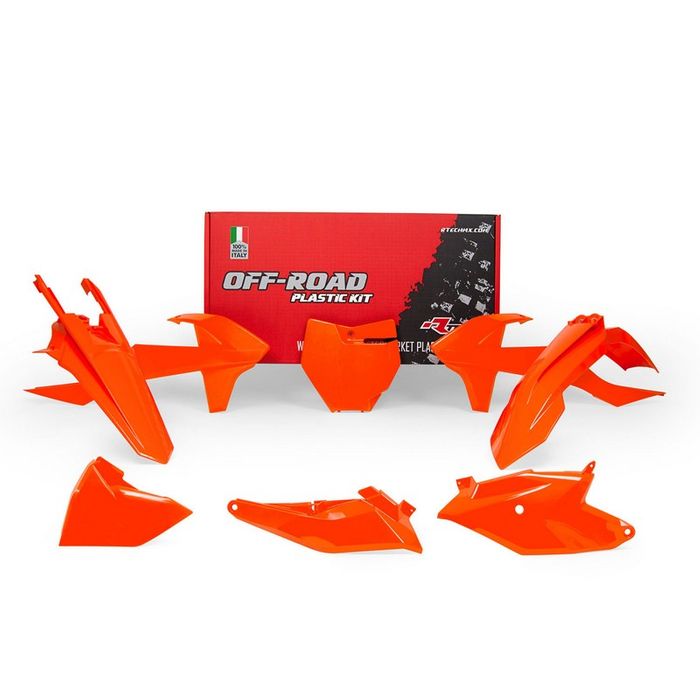 Plastics Kit Rtech 6 Piece Front, Rear Fenders, Sidepanels, Airbox Cover Front Number plate Orange