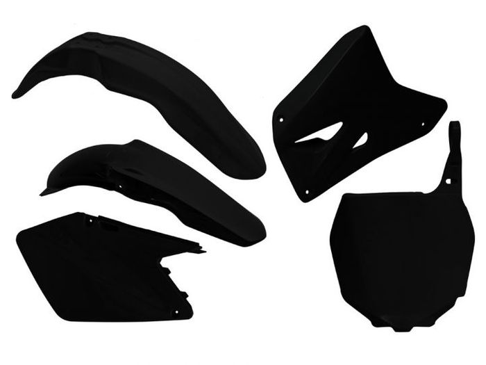 Plastic Kit Rtech {includes Front & Rear Fenders, Sidepanels & Radiator Shrouds & FRONT Numberplate } Black