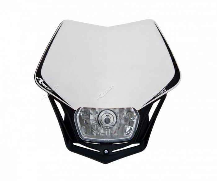 Full LED Headlight RTech V-Face provide a sleek look whilst providing brighter, safer lights at night enhancing rider visability. Universal fitting with anti-vibration rubber straps. Fitted with 12v/35w LED light bulbs. White Black (Need to wired DC not AC)RTECH V-Face Full LED Headlight – Universal Fit
