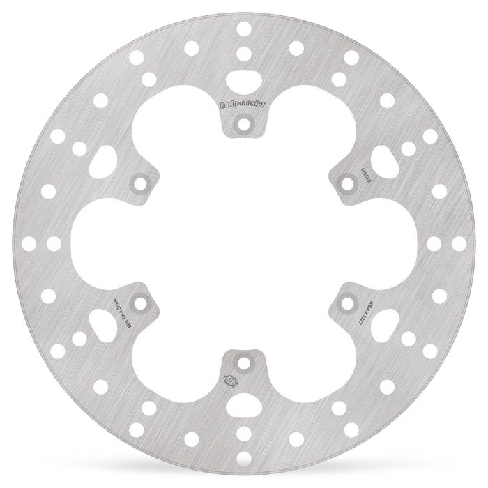 The Moto-Master HALO Series sets a new standard in aftermarket circular-round design brake rotors. Its premium quality stainless steel outer ring allows for high performance braking while at the same time extremely durable. Exact size and positioning of the venting holes ensures equal heat dispersion under high thermal stress while the brake pad contact surface is cleaned evenly. The laser cut and precision grinded outer ring is fixed to a billet CNC machined aircraft aluminium carrier which is black anodized and laser marked. Newly designed lightweight stainless steel floaters complete the package. Halo Road Disc is also available in Halo Racing version in 5.5mm thickness. For best performance we recommend using Moto-Master brake pads. .