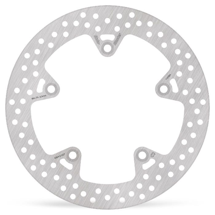 The Moto-Master HALO Series sets a new standard in aftermarket circular-round design brake rotors. Its premium quality stainless steel outer ring allows for high performance braking while at the same time extremely durable. Exact size and positioning of the venting holes ensures equal heat dispersion under high thermal stress while the brake pad contact surface is cleaned evenly. The laser cut and precision grinded outer ring is fixed to a billet CNC machined aircraft aluminium carrier which is black anodized and laser marked. Newly designed lightweight stainless steel floaters complete the package. Halo Road Disc is also available in Halo Racing version in 5.5mm thickness. For best performance we recommend using Moto-Master brake pads.