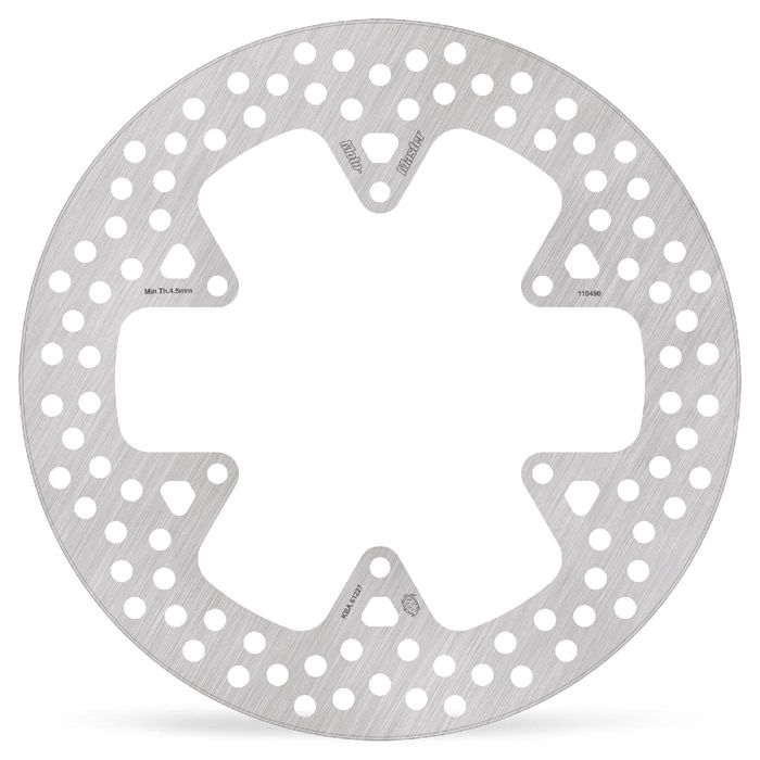 The Moto-Master HALO Series sets a new standard in aftermarket circular-round design brake rotors. Its premium quality stainless steel outer ring allows for high performance braking while at the same time extremely durable. Exact size and positioning of the venting holes ensures equal heat dispersion under high thermal stress while the brake pad contact surface is cleaned evenly. The laser cut and precision grinded outer ring is fixed to a billet CNC machined aircraft aluminium carrier which is black anodized and laser marked. Newly designed lightweight stainless steel floaters complete the package. Halo Road Disc is also available in Halo Racing version in 5.5mm thickness. For best performance we recommend using Moto-Master brake pads. All Moto-Master Discs are T?V approved.