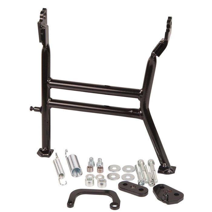 Sw-Motech's Center Stands are constructed from super strong steel and feature a tough black powder-coated finish for lasting durability.