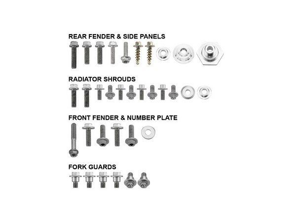 Psychic fastener kits contain all necessary hardware for most of today's motocross and off-road motorcycles