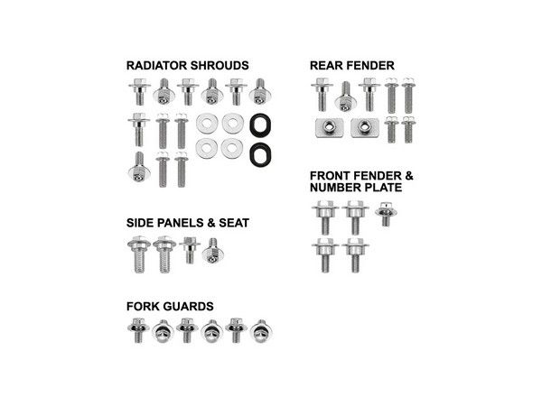 Psychic fastener kits contain all necessary hardware for most of today's motocross and off-road motorcycles